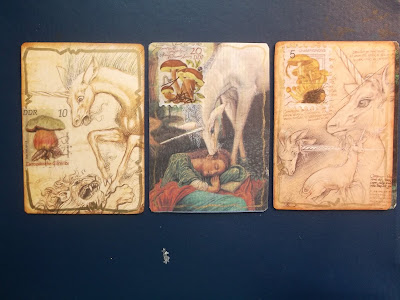 And I don't think I showed these. I found a book of post cards at the thrift store that were decorated with unicorn art.